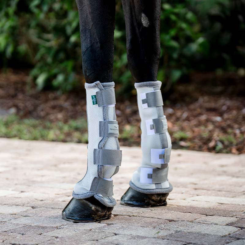 Les Fly Boots gris de Horseware sont des protections anti-mouches légères et respirantes qui aident à protéger les jambes du cheval contre les mouches, les insectes piqueurs et les rayons UV. Elles sont fabriquées en mesh polyester 3D qui permet une bonne circulation de l’air et procure une sensation de fraîcheur autour des jambes.