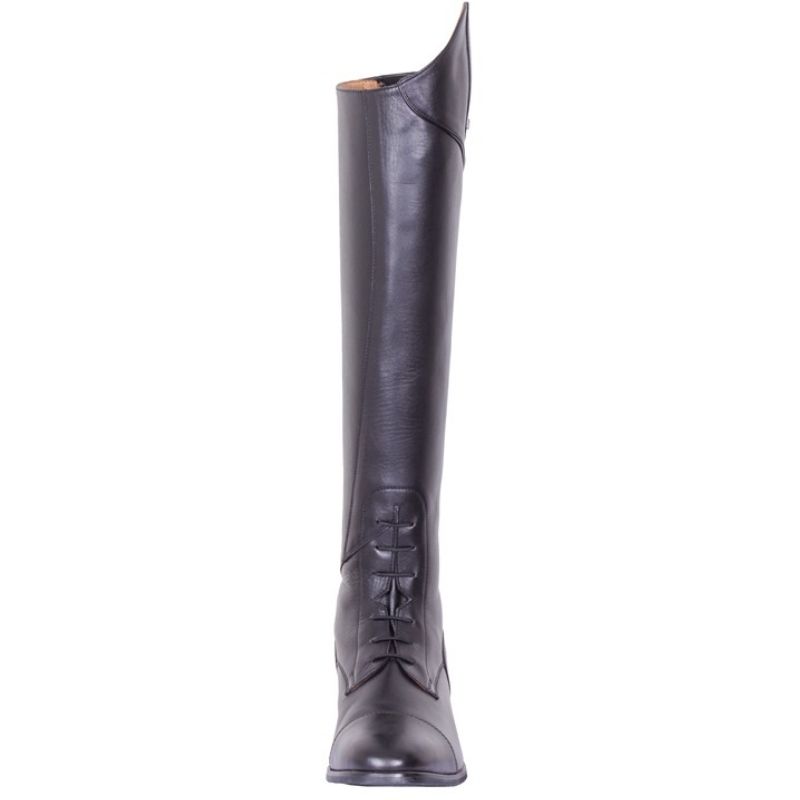 Les bottes d'équitation Diabolo de By Equality Line offrent un design classique et épuré avec des caractéristiques pratiques. Fabriquées en cuir aniline respirant noir, ces bottes sont doublées de cuir de veau pour un confort accru. La semelle intérieure en PU assure une sensation de confort pendant les sorties à cheval. À l'arrière, un support d'éperon à deux positions maintient les éperons en place de manière sécurisée. Une fermeture éclair intégrale extra résistante et un élastique robuste à l'arrière offrent stabilité et liberté de mouvement.