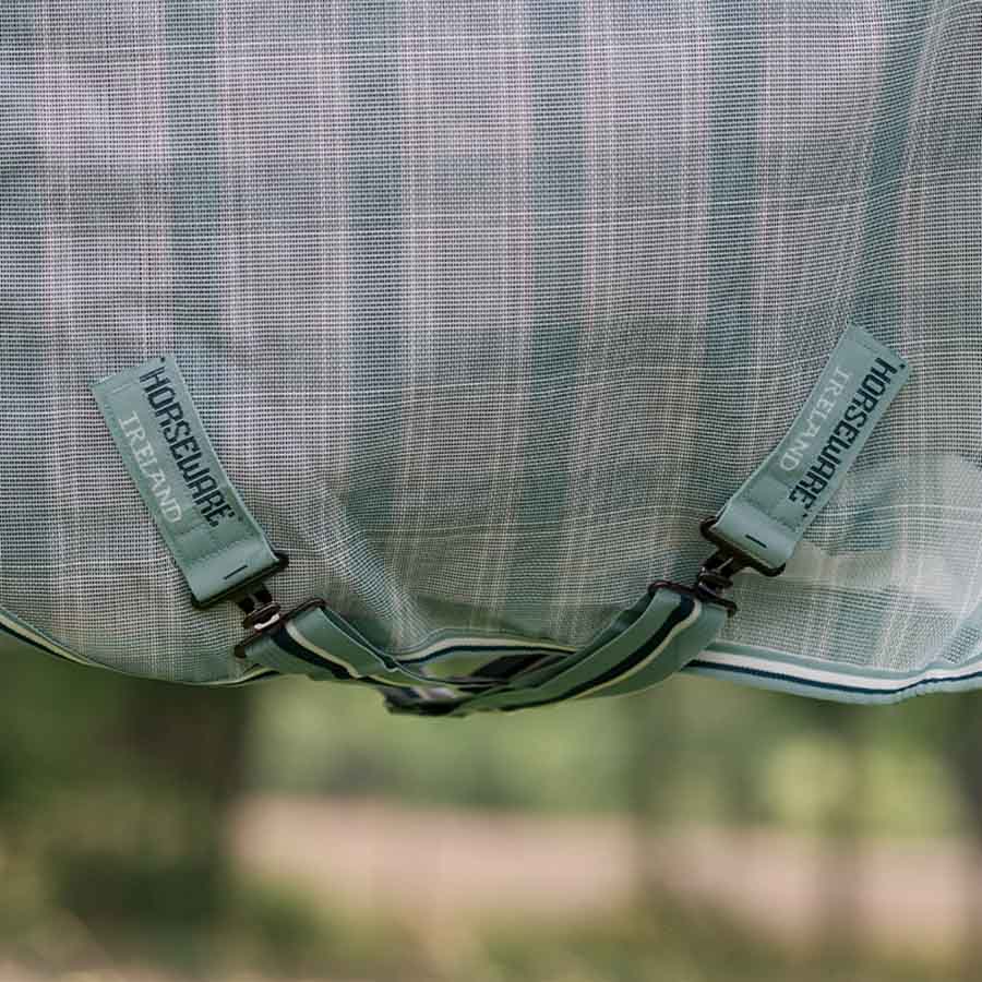 La couverture anti-mouches Horseware Newmarket offre au cheval une protection contre les mouches et les rayons UV. Elle est fabriquée en mesh de polyester tissé avec un revêtement en PVC, un matériau qui combine bonne respirabilité et grande résistance.
