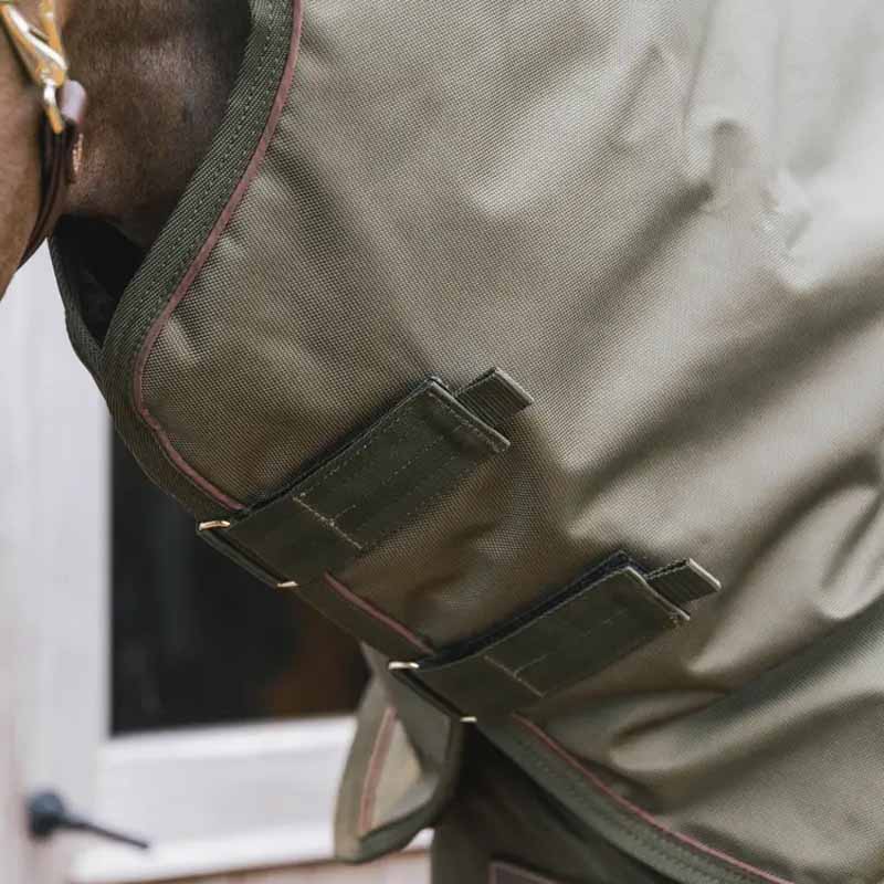Le Couvre-cou All Weather Waterproof Pro 150g est une solution pratique et durable pour protéger le cou de votre cheval par tous les temps. Il est conçu pour être utilisé en combinaison avec notre Couverture de Sortie All Weather, ce qui en fait un excellent complément pour garder votre cheval au chaud et au sec. Le tissu extérieur est en polyester haute ténacité 1680 Denier, ce qui rend le couvre-cou extrêmement résistant, durable et résistant à la saleté. Le revêtement PU imperméable et respirant le rend résistant à toutes les conditions météorologiques. Pour éviter les frottements sur la crinière, le bord derrière les oreilles est doublé de fausse fourrure de lapin. Le couvre-cou peut être facilement fixé à la couverture avec les quatre fermetures Velcro robustes et dispose également de deux fermetures Velcro supplémentaires. Il est lavable en machine à 30°C, mais ne pas passer au sèche-linge.