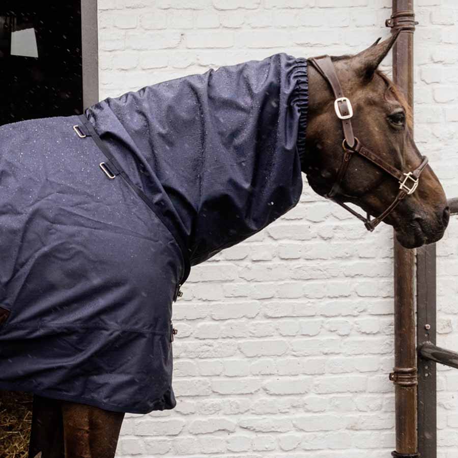 Le Couvre-cou Waterproof Classic est un excellent choix pour offrir protection et confort à votre cheval. Ce couvre-cou se combine facilement avec tous les types de couvertures, ce qui le rend parfait pour un usage quotidien dans le paddock ou sur le terrain. Avec son tissu extérieur en ripstop 600D, il résiste à diverses conditions météorologiques, garantissant une protection fiable. La doublure est en polyester antibactérien 210T, ce qui facilite l'entretien et empêche les poils de coller. Le col élastique assure un bon ajustement tout en respectant le confort du cheval. Grâce à la fermeture éclair sous le cou, il est facile à enfiler et à retirer, et une petite fermeture Velcro au niveau du toupet aide à le maintenir en place. Pour garder le couvre-cou en bon état, un lavage en machine à 30 degrés est recommandé, mais il est préférable de laver le moins souvent possible pour préserver la qualité. Il suffit de le laisser sécher à l'extérieur par une journée ensoleillée pour de meilleurs résultats.