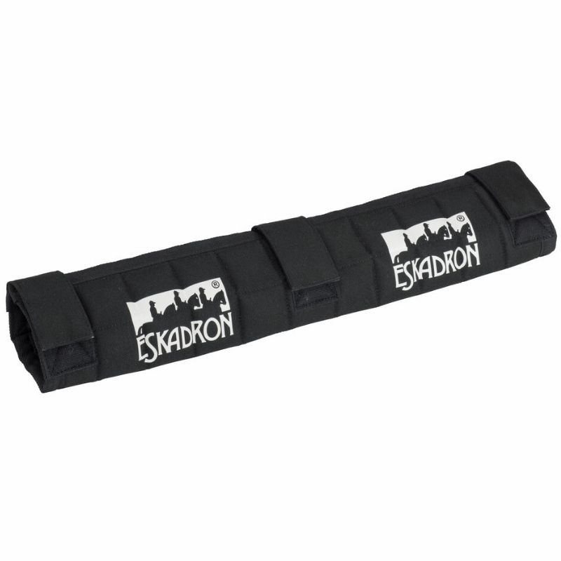 Le Protection de box Eskadron Stable Head Protector est un protège-box matelassé en noir, fabriqué en polypropylène robuste. Conçu pour protéger la tête de votre cheval dans le box ou pendant le transport, il mesure 50 x 30 cm. Il se fixe solidement avec trois attaches Velcro, garantissant praticité et sécurité.