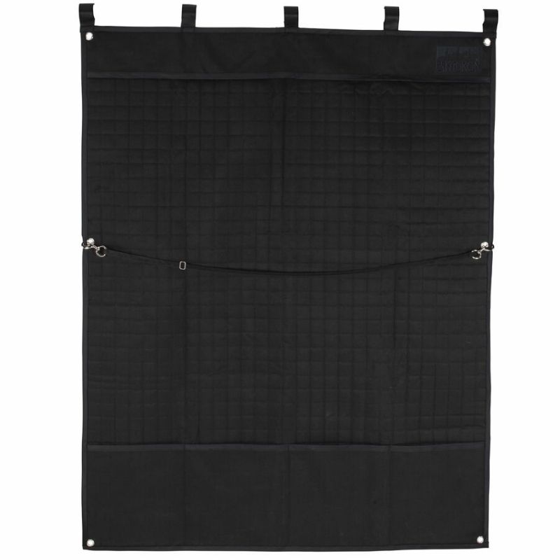Le Rideau de box Eskadron Quilt Long en noir est un ajout robuste et pratique à l'écurie de votre cheval. Il présente un design matelassé classique avec une bordure élégante, offrant un look stylé. Les fixations Velcro réglables assurent une suspension flexible et sécurisée, tandis que les œillets dans les coins et sur les côtés offrent des options de montage alternatives. Des poches pratiques offrent un espace de rangement supplémentaire, et des crochets cachés en haut permettent de suspendre facilement des brides et d'autres accessoires. Une sangle centrale offre des possibilités de suspension supplémentaires, comme pour les tapis de selle. Le rideau de box mesure 190 x 150 cm.