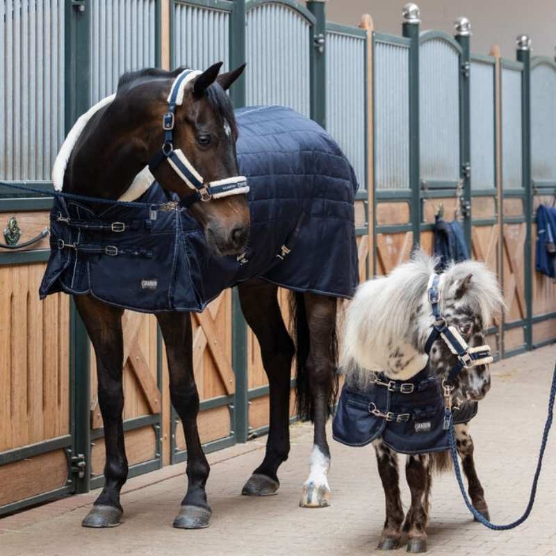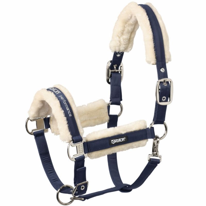 Le licol Eskadron Fauxfur Double Pin en bleu marine est un licol de haute qualité avec un tissu extérieur brillant et une sangle intérieure résistante. Il dispose de boucles à double ardillon pour un ajustement symétrique et est également réglable sous le menton. Le licol est équipé de rembourrages FauxFur amovibles et faciles d'entretien sur le nez, le cou et les montants, offrant un confort supplémentaire à votre cheval.