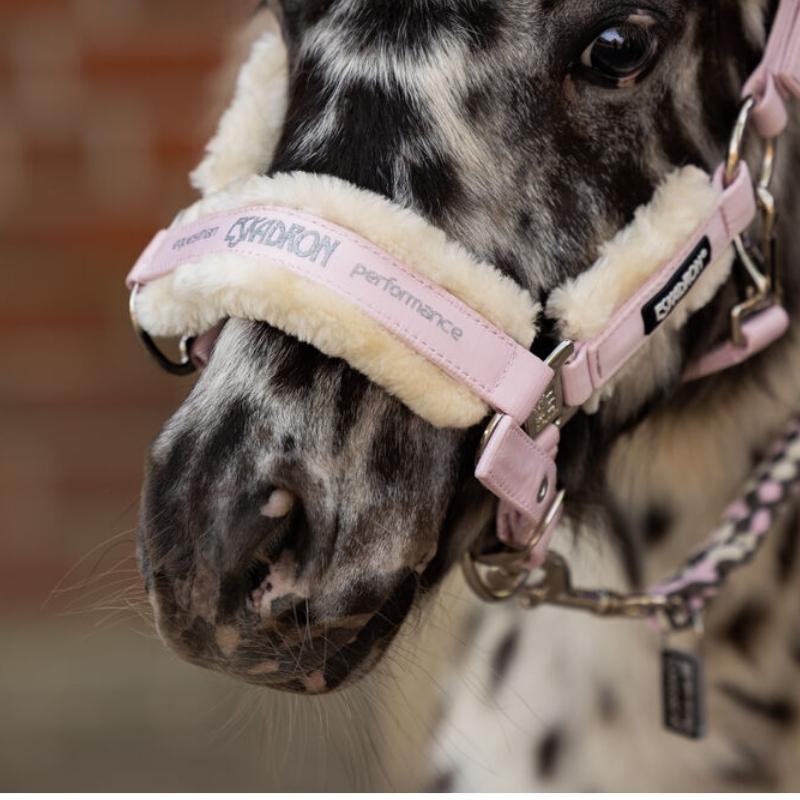 Le licol Eskadron Fauxfur Double Pin est un licol de haute qualité dans une jolie couleur rose. Il présente un tissu extérieur brillant et une sangle intérieure durable pour une résistance accrue. Le licol est équipé de boucles à double ardillon pour un ajustement symétrique et peut également être ajusté sous le menton. Il comprend des doublures en FauxFur amovibles et faciles d'entretien sur le nez, le cou et les montants pour un confort supplémentaire.