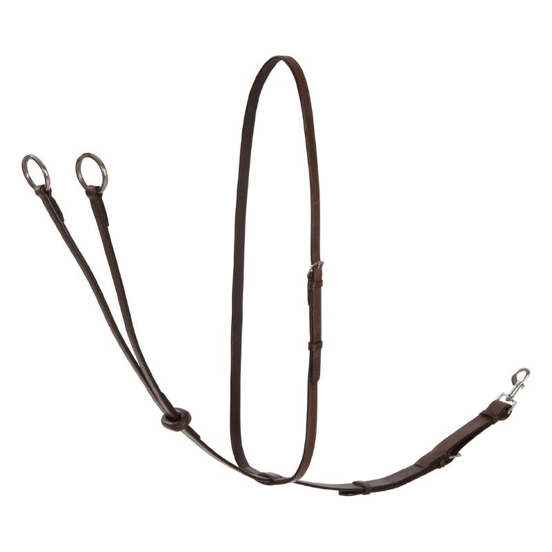 La martingale Lippo Selected est fabriquée en cuir marron souple avec des coutures assorties pour un look élégant. Elle est dotée de boucles argentées et d'une butée en caoutchouc réglable pour une personnalisation accrue. De plus, elle comprend un mousqueton amovible à l'attache de la sangle, ce qui la rend facile à utiliser et à ajuster.