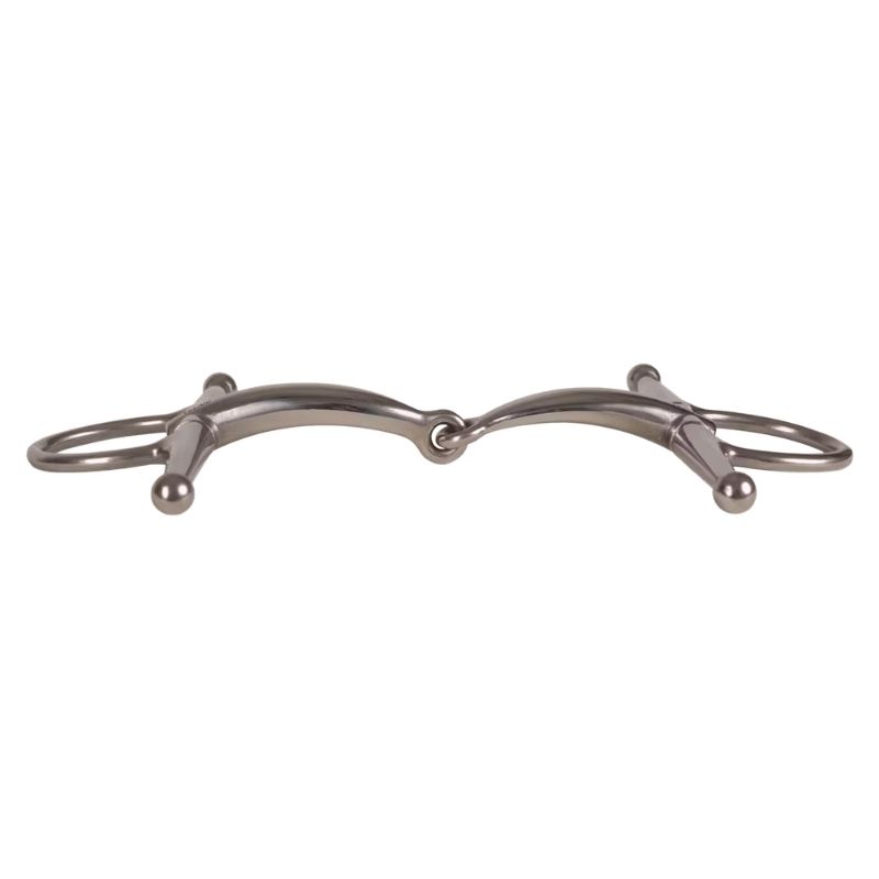 Le mors à joues VELARI est à simple brisure et fabriqué en acier inoxydable, offrant un contact neutre et stable sans affecter le goût. Conçu pour une action claire et directe, il est doté de joues pour un soutien latéral supplémentaire et des aides précises. L'embouchure à simple brisure forme un V sous pression, répartissant la pression sur la langue et les barres, ce qui le rend adapté aux chevaux avec un palais plus haut. Les joues aident le cheval à comprendre les aides, rendant ce mors particulièrement adapté aux chevaux plus jeunes ou moins expérimentés. Rincez à l'eau tiède après utilisation et séchez soigneusement. Conservez au sec et vérifiez régulièrement l'usure.