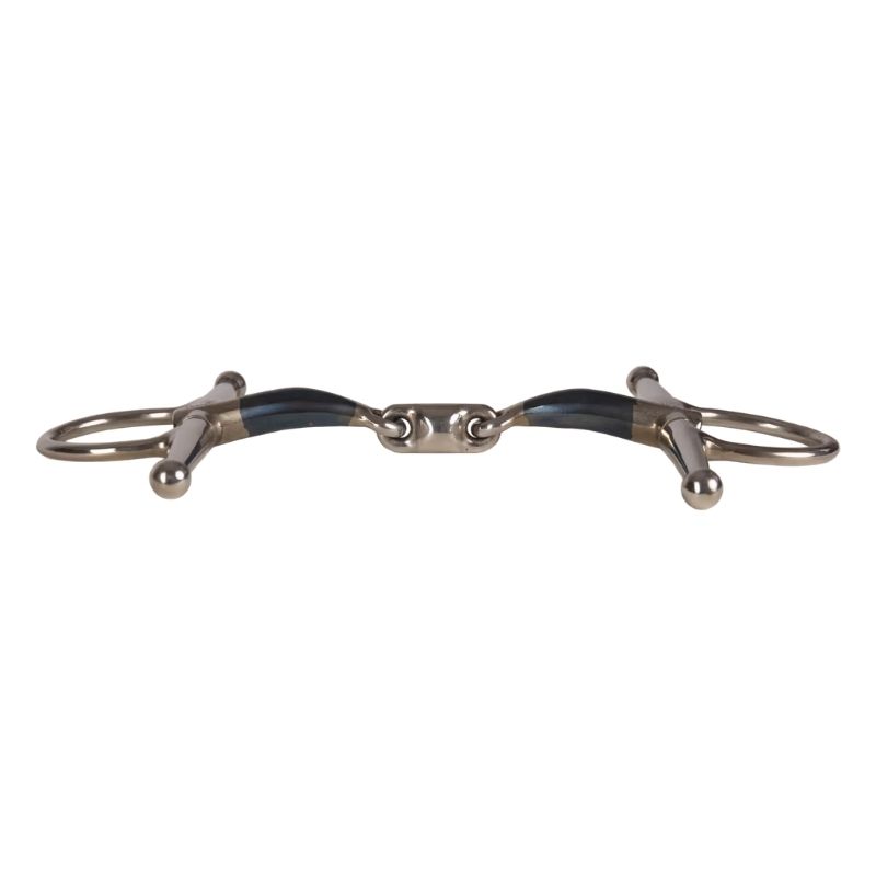 Le mors à jouets fixes VELARI est un mors à double brisure conçu pour une répartition uniforme de la pression et une stabilité accrue. Fabriqué en sweet iron, il favorise la salivation et la relaxation du cheval. Les jouets fixes offrent un soutien latéral clair, ce qui le rend particulièrement adapté aux chevaux plus jeunes ou moins expérimentés. Sa construction à double brisure réduit l'effet casse-noisette et répartit la pression uniformément sur la langue et les barres, offrant une sensation douce et réactive. Ce mors est idéal pour les chevaux avec un palais plus bas et ceux sensibles à la pression des mors à simple brisure. L'embouchure en sweet iron s'oxyde naturellement, développant une patine qui peut améliorer l'acceptation. Rincez à l'eau tiède après utilisation et séchez soigneusement. Conservez au sec et vérifiez régulièrement l'usure.