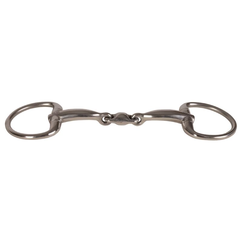 Le mors à olive double brisures de VELARI en acier inoxydable est conçu pour offrir une répartition uniforme de la pression et un contact stable avec le cheval. L'embouchure double brisure réduit l'effet casse-noisette et répartit la pression de manière homogène sur la langue et les barres, offrant une sensation douce et réactive. Ce mors convient particulièrement aux chevaux avec un palais plus bas ou sensibles à la pression des mors simples. Les anneaux fixes à olive maintiennent le mors stable et réduisent le risque de pincement, offrant des aides de rênes stables et fiables. Rincez à l'eau tiède après utilisation et séchez soigneusement. Stockez au sec et vérifiez régulièrement l'usure.