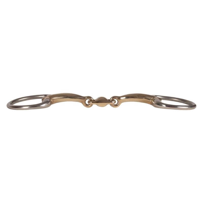 Le mors à olive double brisures Sweet Copper 14mm de VELARI est conçu pour assurer une répartition uniforme de la pression et favoriser la relaxation chez les chevaux sensibles. Son embouchure double brisure répartit la pression de manière homogène sur la langue et les barres, réduisant l'effet casse-noisette pour une sensation douce. Ce mors convient particulièrement aux chevaux avec un palais bas et ceux sensibles à la pression des mors simple brisure. Le matériau sweet copper a un goût naturellement sucré qui stimule la production de salive, aidant les chevaux à rester souples et réceptifs au contact. Les anneaux fixes à olive offrent stabilité, réduisent les mouvements latéraux et assurent des aides de rênes fiables.