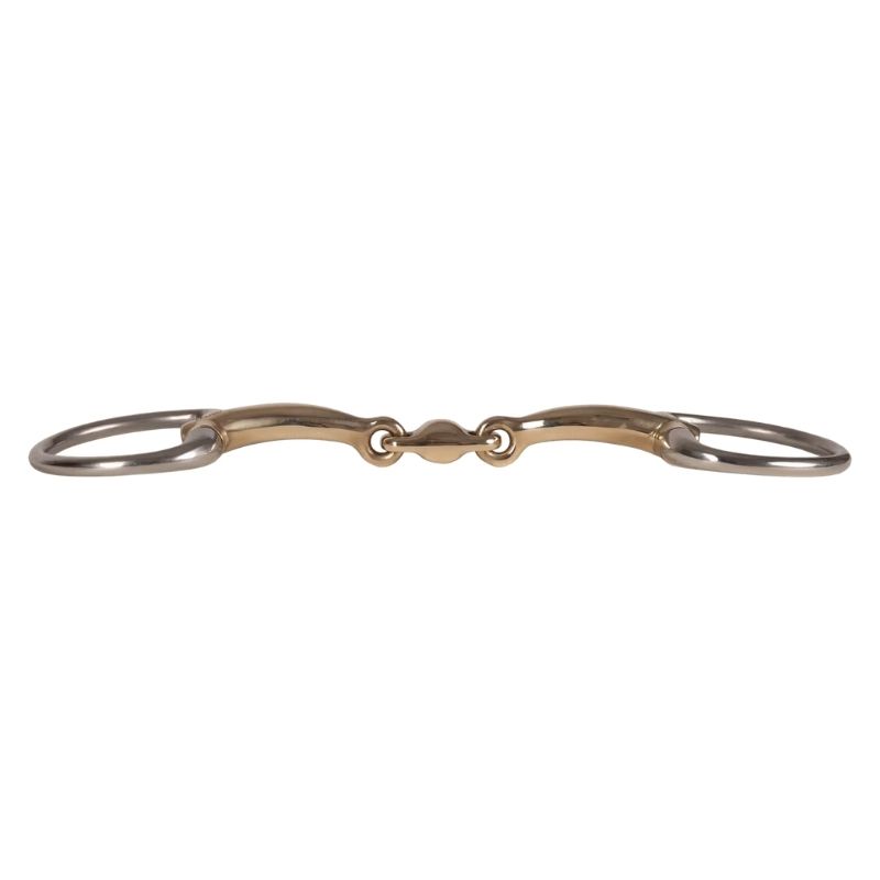 Le mors à olive VELARI Double brisures Sweet Copper 16mm offre une répartition uniforme de la pression, favorisant la relaxation chez les chevaux sensibles. Son embouchure en sweet copper a un goût naturellement sucré qui stimule la production de salive, aidant le cheval à rester souple et réceptif au contact. Les anneaux fixes assurent stabilité et aides régulières, réduisant les mouvements latéraux et le risque de pincement. Cette conception convient particulièrement aux chevaux avec un palais bas et ceux sensibles à la pression des mors à simple brisure. Le mors a une épaisseur de 16 mm, et il est recommandé de le rincer à l'eau tiède après utilisation et de bien le sécher. Conservez-le dans un endroit sec et vérifiez régulièrement l'usure.