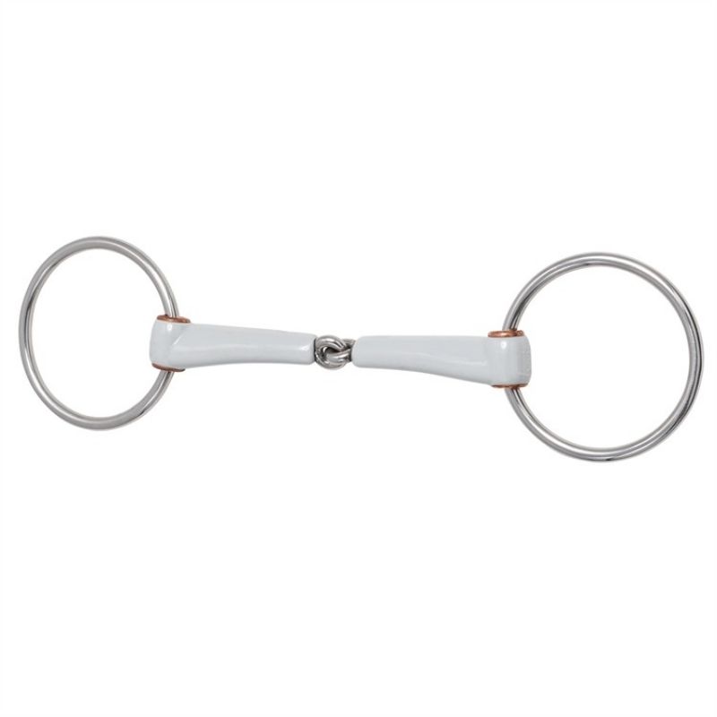 Le mors à simple brisure de Beris est doté d'un embout en plastique avec de larges surfaces de contact contre la langue et les barres, assurant une répartition uniforme de la pression et un confort accru pour le cheval. Son profil plus étroit permet au mors de prendre moins de place dans la bouche, offrant une sensation de fluidité. Le matériau a une surface très lisse qui offre une bonne glisse, même pour les chevaux qui produisent moins de salive. L'embout est en Medium Soft, offrant une combinaison équilibrée de stabilité et de flexibilité dans le contact. Les anneaux libres permettent au mors de bouger librement dans la bouche, ce qui peut offrir un contact plus dynamique. Les anneaux passent par des manchons en cuivre intégrés, réduisant la friction et augmentant la durabilité.