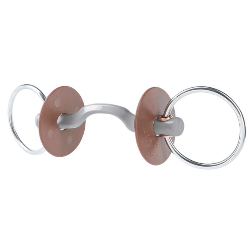 Les anneaux mobiles, passant par une douille en cuivre, permettent au mors de bouger plus librement dans la bouche du cheval et réduisent l'usure, augmentant ainsi la durabilité. Le design Konnex offre une combinaison de stabilité et de soulagement de la langue, ce qui peut être bénéfique pour les chevaux ayant un espace limité dans la bouche ou préférant moins de pression sur la langue. Notez que l'embouchure n'est pas destinée aux chevaux qui mâchent le mors. Les tailles poney sont livrées avec des pièces latérales proportionnellement plus petites.