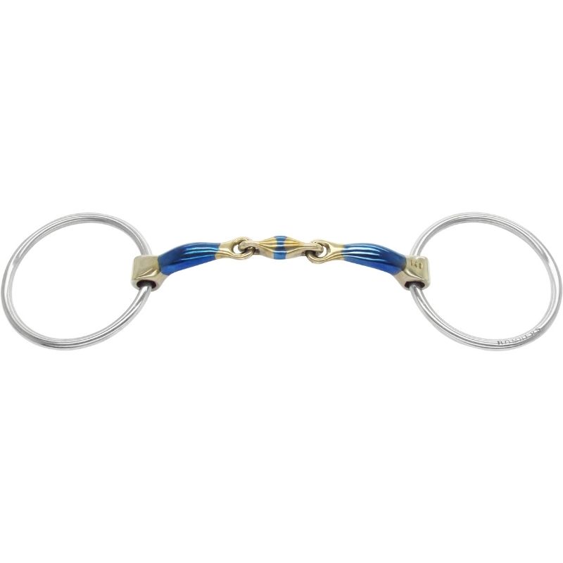 Le mors à anneaux libres Elliptical de Bombers offre un contact direct et clair avec une libération immédiate. Lorsque la rêne est relâchée, le mors revient rapidement à une position neutre dans la bouche du cheval, réduisant ainsi la pression sur la langue et les barres. L'embouchure est à double brisure avec une partie centrale elliptique de 45 mm de long, offrant une action légèrement plus forte que la plaque de contrôle en concentrant la pression sur une plus petite surface. Cela le rend particulièrement adapté aux chevaux qui ont tendance à pousser contre le mors avec leur langue, les encourageant à alléger le contact et à trouver une forme plus équilibrée. Pour une stabilité accrue, l'utilisation de rondelles de mors ou d'une sangle de mors peut être bénéfique. Les mors Bombers sont fabriqués à la main en Afrique du Sud et sont disponibles dans une large gamme de tailles et de variantes, permettant une personnalisation étendue. Les embouchures sont en sweet iron et laiton, tandis que les anneaux et branches sont en acier inoxydable.
