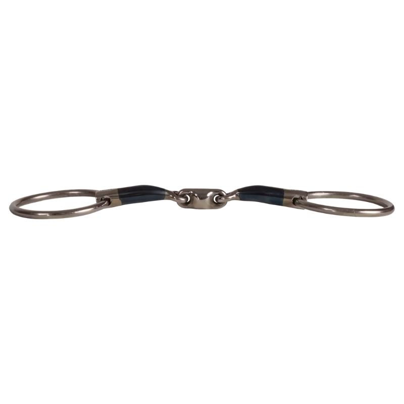 Le mors VELARI à anneaux libres double brisure est conçu pour répartir la pression de manière uniforme et favoriser la salivation naturelle. Le canon en fer doux soutient un contact souple et détendu ainsi qu’une sensation réactive tout au long du travail. Le mors repose délicatement sur la langue et s’adapte à la forme de la bouche, favorisant une connexion élastique et raffinée entre le cavalier et le cheval. Sa conception à double brisure réduit l’effet casse-noisette, ce qui le rend idéal pour les chevaux avec un palais plus bas. Les anneaux libres améliorent la mobilité et permettent des aides de rênes précises.