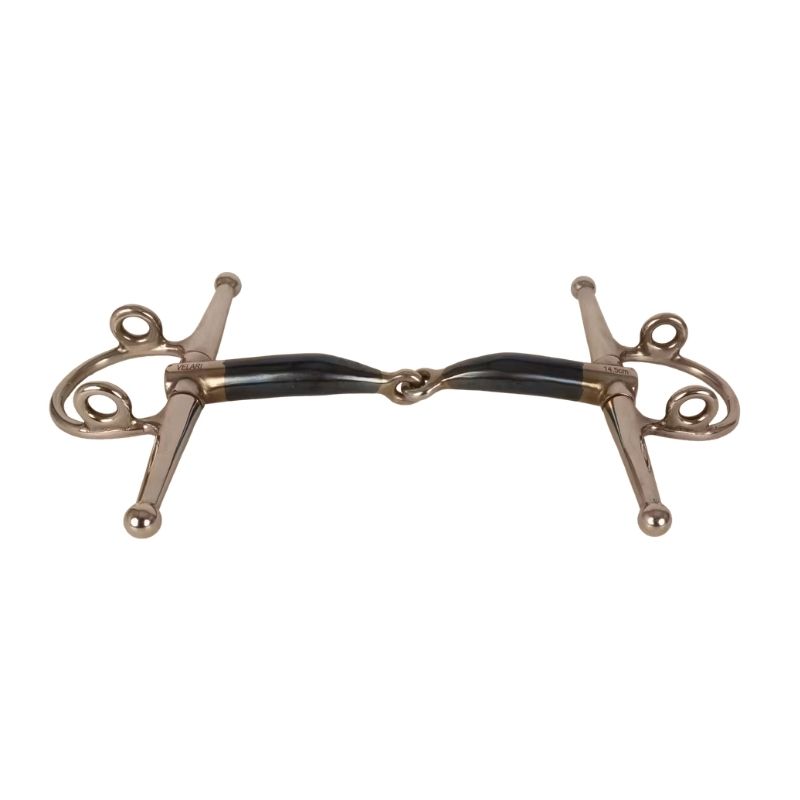 Les joues pleines stabilisent le mors latéralement, aidant à guider les épaules du cheval et à améliorer les virages. L'effet gag, activé via les montants à travers les anneaux, offre une légère action de levage par pression sur la nuque. Ceci est particulièrement utile pour les chevaux qui deviennent lourds sur l'avant-main ou lorsque plus de légèreté dans la main est souhaitée. Le mors a une épaisseur de 16mm. Rincez à l'eau tiède après usage et séchez soigneusement. Avec le temps, le sweet iron développe une patine naturelle qui améliore le goût et l'acceptation. Conservez au sec et vérifiez régulièrement la surface.