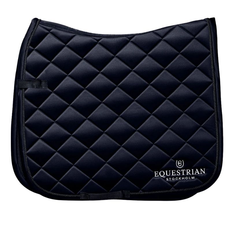 Le tapis de selle dressage Equestrian Stockholm, modèle ES Line, en Midnight Blue, est conçu pour garder votre cheval au frais et au sec pendant l'entraînement. L'intérieur est traité avec High IQ Cool Comfort, qui évacue efficacement l'humidité et sèche rapidement. Ce tapis de selle est orné de galon, passepoil et broderie blanche pour une apparence élégante. Les sangles Velcro et la sangle de passage assurent un maintien sécurisé. Fabriqué en polyester durable, il est idéal pour une utilisation régulière.