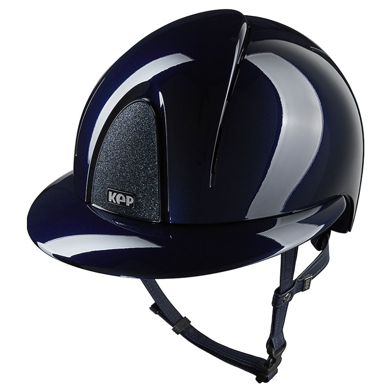 Cette version bleu marine du KEP Smart Nova Metal Polish Polo Star, avec une finition très brillante (glossy), des détails pailletés scintillants et une large visière soleil, est un casque d’équitation soigneusement conçu et élaboré, développé pour offrir une combinaison de protection fiable et de confort optimal. La coque extérieure en ABS est associée à une couche intérieure en EPS qui amortit efficacement les chocs en cas de chute ou d’impact. L’arrière allongé suit la forme de la nuque et offre une protection supplémentaire sur une zone sensible - sans limiter en aucune façon la liberté de mouvement.