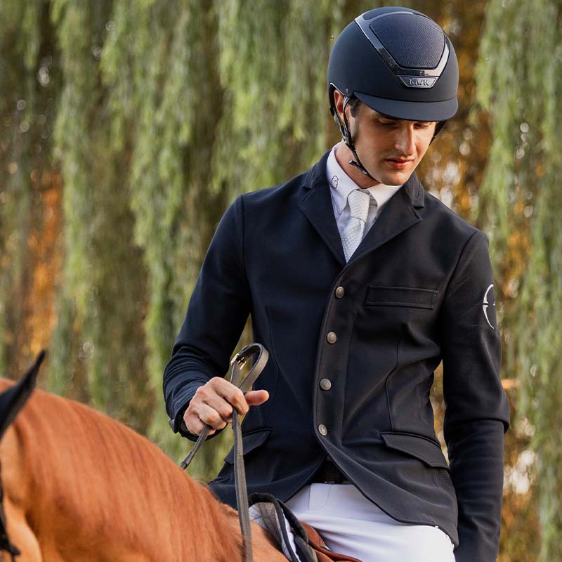 KASK Dogma Chrome, ici en bleu marine, est un casque d’équitation haut de gamme avec visière standard qui allie sécurité, confort et un design moderne et élégant. La finition mate est complétée par des détails chromés discrets ton sur ton avec la coque, offrant un aspect raffiné et épuré.