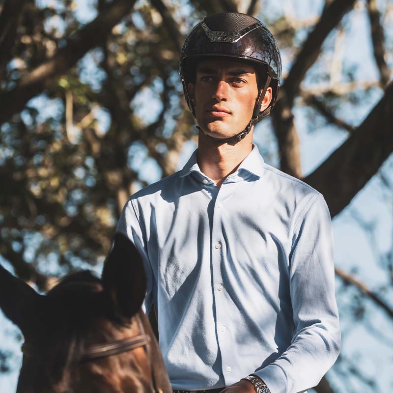 KASK Dogma Pure Shine, ici en coloris Espresso Brown, est un casque d’équitation haut de gamme avec visière standard qui allie sécurité, confort et un design moderne et élégant. La surface très brillante est rehaussée par des détails chromés brillants ton sur ton avec la coque, offrant un aspect raffiné et élégant.