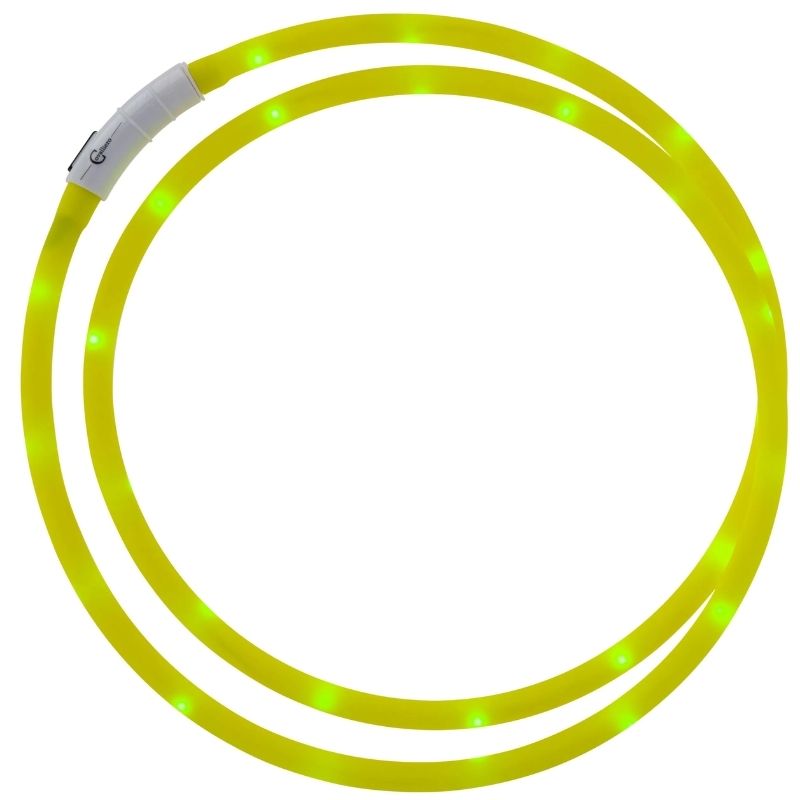 Le Covalliero Reflex LED Ring est un couvre-cou étanche avec une bande jaune, conçu pour offrir une visibilité optimale jusqu'à 500 mètres. L'éclairage LED vert vif combiné à la bande jaune garantit que le cheval est clairement visible de loin, augmentant ainsi la sécurité lors des sorties nocturnes et au crépuscule. Le couvre-cou dispose d'une taille universelle et peut être facilement raccourci à la longueur souhaitée, avec une circonférence maximale de 150 cm. Il s'ouvre facilement avec un bouton, ce qui le rend simple et sans stress à mettre sur le cheval. La batterie rechargeable se charge via un câble USB-C, et vous pouvez choisir entre trois modes d'éclairage différents – deux clignotants et un fixe.