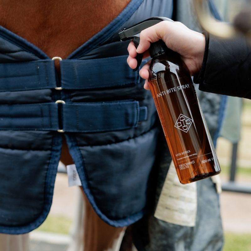 - Empêche le mâchonnement et le mordillement des couvertures, bandages et équipements d’écurie