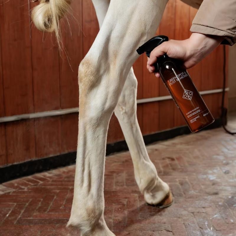 Profitez d’un pelage propre et soigné sans avoir besoin de le laver – parfait pour garder votre cheval en excellente condition toute l’année. Green Spot & Dust Remover Almond est un spray de soin indispensable qui nettoie et entretient efficacement le pelage de votre cheval sans nécessiter d’eau. Particulièrement idéal en automne et en hiver, il réduit le besoin de lavages fréquents tout en gardant le pelage propre et bien entretenu. Le spray élimine efficacement les taches tenaces telles que la boue, l’herbe, le fumier et l’urine, ce qui le rend parfait pour un nettoyage rapide au quotidien ou avant les compétitions. Sa formule non moussante et incolore ne laisse aucun résidu, tandis que son effet conditionneur intégré apporte une finition douce et brillante.