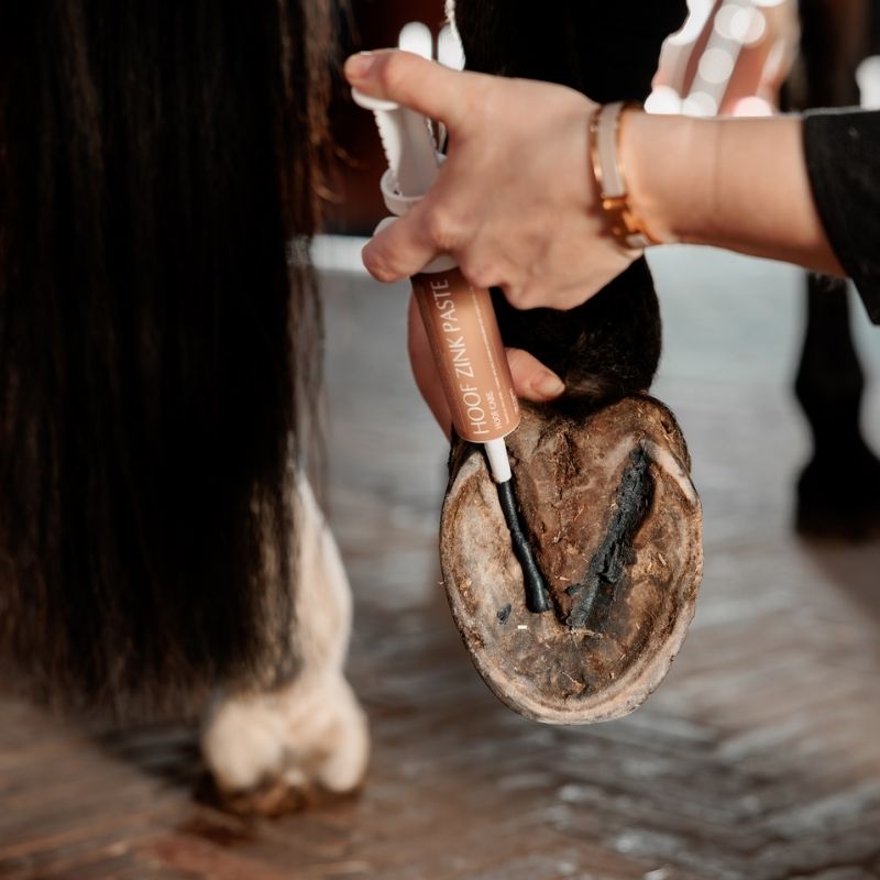 Equi Hoof Zinc Paste est une pâte de soin pour sabots développée pour offrir un soin optimal et renforcer la fourchette. Elle est enrichie en oxyde de zinc, cuivre et chélate de zinc, acides organiques et huile d’arbre à thé, offrant une protection efficace et un soutien pour la santé du sabot. Sa texture épaisse adhère parfaitement et reste en place, permettant une action ciblée là où elle est le plus nécessaire – directement sur la fourchette.