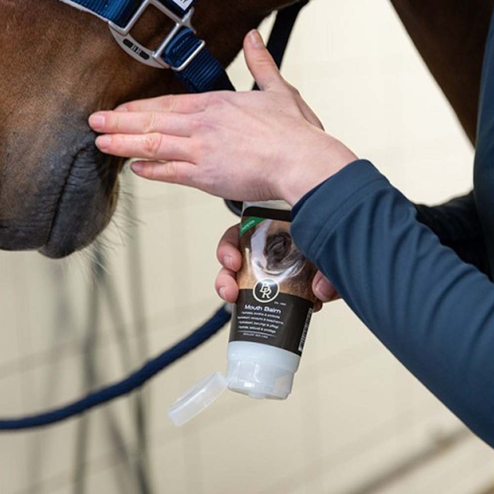Appliquez le baume sur les coins de la bouche du cheval avant et après l'équitation, ou alternativement sur les fissures sèches, les petites blessures ou la peau irritée. Si nécessaire, vous pouvez également appliquer le beurre pour la bouche sur le mors pour réduire les frottements et stimuler davantage l'activité de mastication et la production de salive.