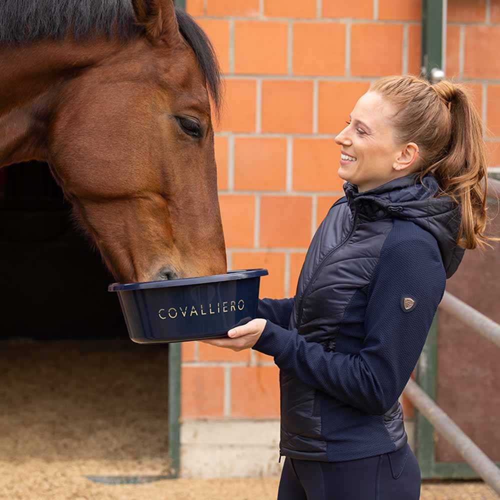 La Veste Hybride Quilted de Covalliero en bleu marine allie fonctionnalité et design élégant. La partie avant matelassée assure une chaleur agréable, tandis que les inserts en maille élastique sur les côtés offrent une liberté de mouvement optimale et une bonne respirabilité. Parfaite pour les jours changeants – légère, confortable et polyvalente.