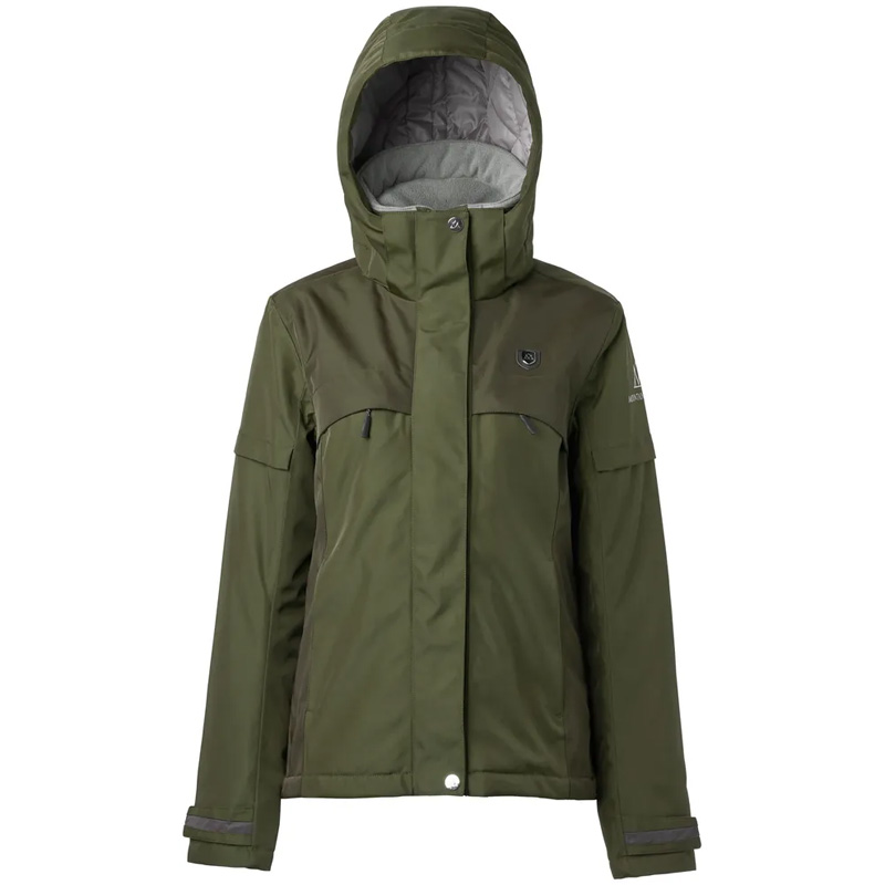 La veste d'équitation Mountain Horse Royal Grace pour femmes en vert est une version mise à jour de leur veste d'équitation classique. Elle présente une coupe attrayante et des caractéristiques fonctionnelles idéales pour l'équitation. La veste est entièrement étanche, imperméable et respirante, offrant un confort par tous les temps. Elle comprend une fermeture éclair principale YKK® à double sens pour un ajustement, une capuche amovible et réglable pour une bonne visibilité latérale, un rabat de manche réglable et un poignet intérieur pour plus de chaleur, plusieurs poches sécurisées et des fentes d'équitation à l'arrière.