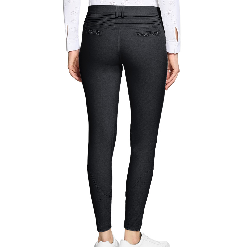 Le pantalon d’équitation Samshield Adele à grip genoux présente une taille mi-haute et offre une coupe ajustée avec une excellente liberté de mouvement. Il est fabriqué dans un tissu italien noir, extensible, respirant et résistant. Le matériau est anti-boulochage et infroissable, ce qui lui permet de conserver son aspect au fil du temps.