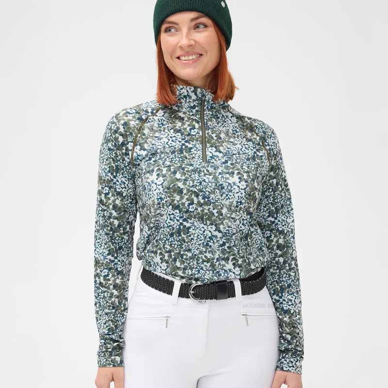 Le T-shirt fonctionnel Mountain Horse Isolde Forest Tech Top est un haut vert pour femmes conçu pour un confort et des performances optimaux. Ce t-shirt est fabriqué dans un tissu extensible et à séchage rapide qui est doux sur la peau. Il dispose d'un col ajusté avec une courte fermeture éclair à l'avant et d'un logo MH en feuille d'argent sur la manche.