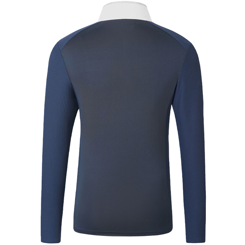 Le haut de concours bleu marine à manches longues Covalliero est fabriqué dans une matière légère et fonctionnelle offrant une excellente respirabilité et des propriétés d’évacuation de l’humidité, idéal pour les journées de compétition les plus intenses.